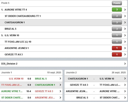 2 eme journée et 2eme victoires contre vern